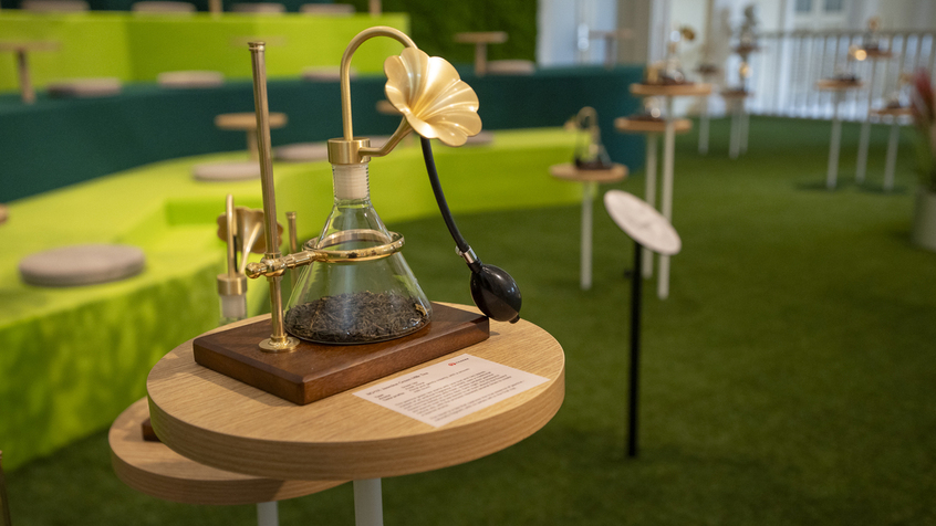 The journey begins with a sculptural paper installation by artist Ashley Yeo, inspired by the form of tea leaves. The canopy-like structure creates a calm, contemplative space that encourages visitors to slow down, observe and ease into the experience, setting the tone for mindful exploration.