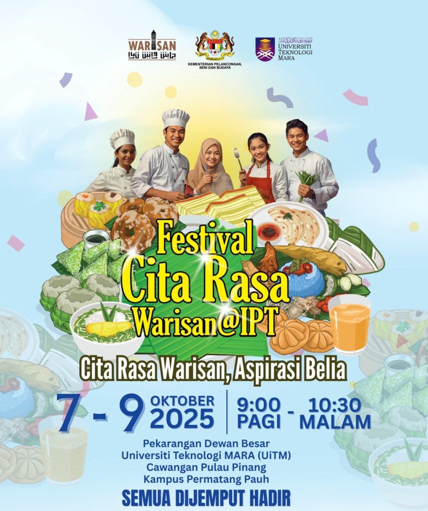 The nationwide 2025 Festival Cita Rasa Warisan (Heritage Taste Festival) series is coming to a close with the final stop at Universiti Teknologi Mara, Penang branch, Permatang Pauh campus from Oct 7-9.