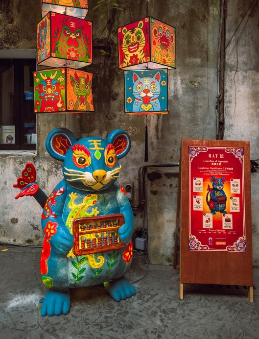 The installation features twelve Chinese Zodiac Guardians presented as sculptural figures of varying forms, poses and scales, with the lead Guardian standing over 7 feet tall. Each guardian embodies a distinct blessing, collectively forming a visual narrative of protection, care and heritage within the historic laneway.