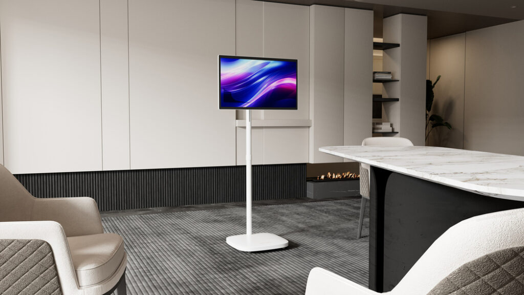 The Prism+ Roam and Roam Ultra displays on ergonomic wheeled stand, offers effortless mobility and flexibility. These displays move seamlessly from room to room – acting as a workstation, learning screen, home gym companion, kitchen assistant, or entertainment hub depending on daily needs.