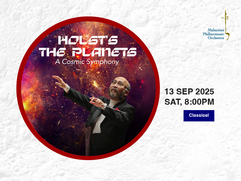 Tickets for Holst’s The Planets: A Cosmic Symphony concert are priced at at RM379 for Premium, RM329 for A Reserve, RM279 for B Reserve, RM229 for C Reserve and RM439/RM499 per seat (inclusive of refreshments) for Suite. Get your tickets here: https://dfptickets.sales.ticketsearch.com/sales/salesevent/141188